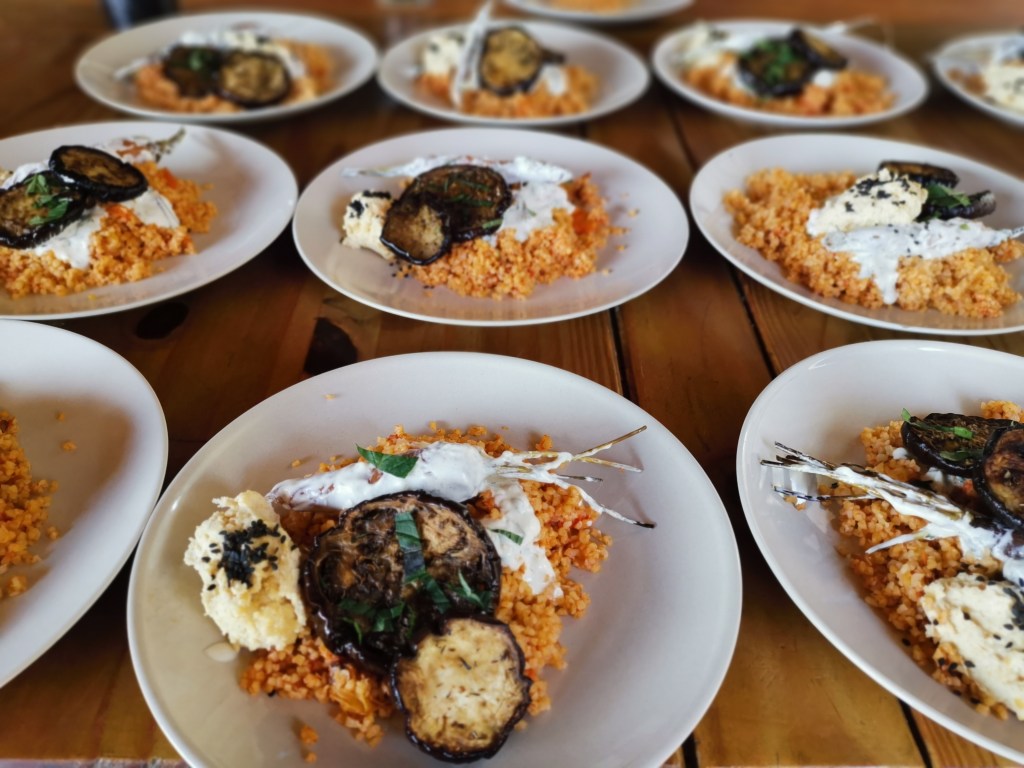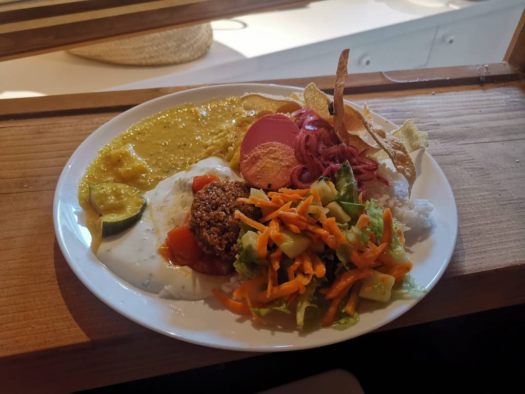 Notre cantine s’est progressivement spécialisée dans une proposition de cartes de plats du jour qui varie selon les saisons, les épices ramenées du bled, nos envies et inspirations du moment. À chaque service, une nouvelle proposition d’assiette composée et de desserts gourmands.
